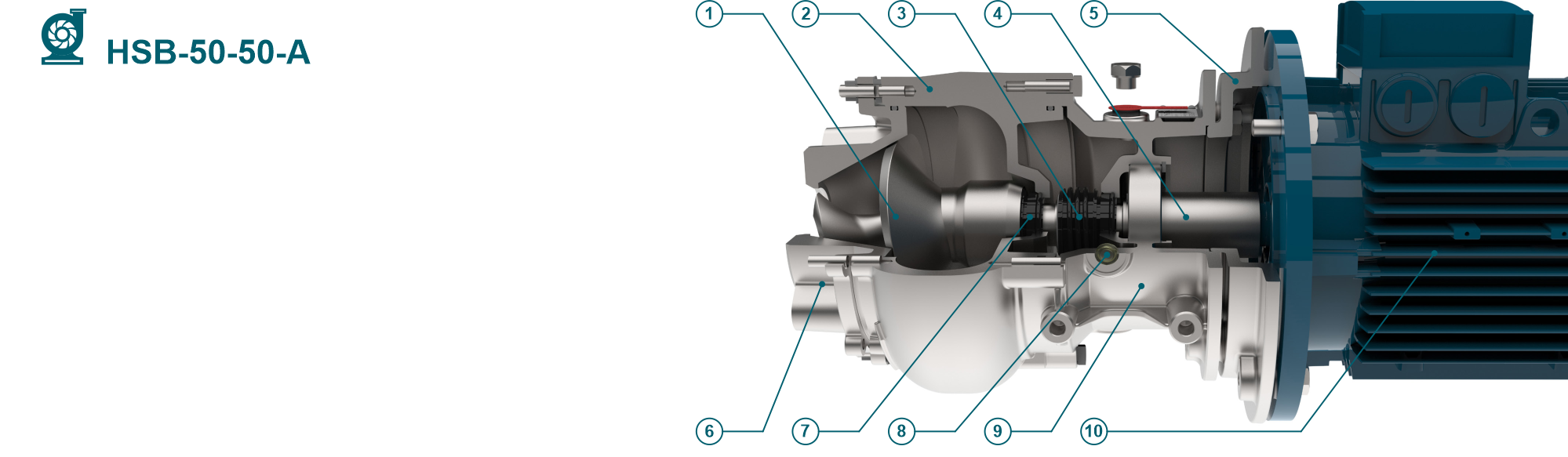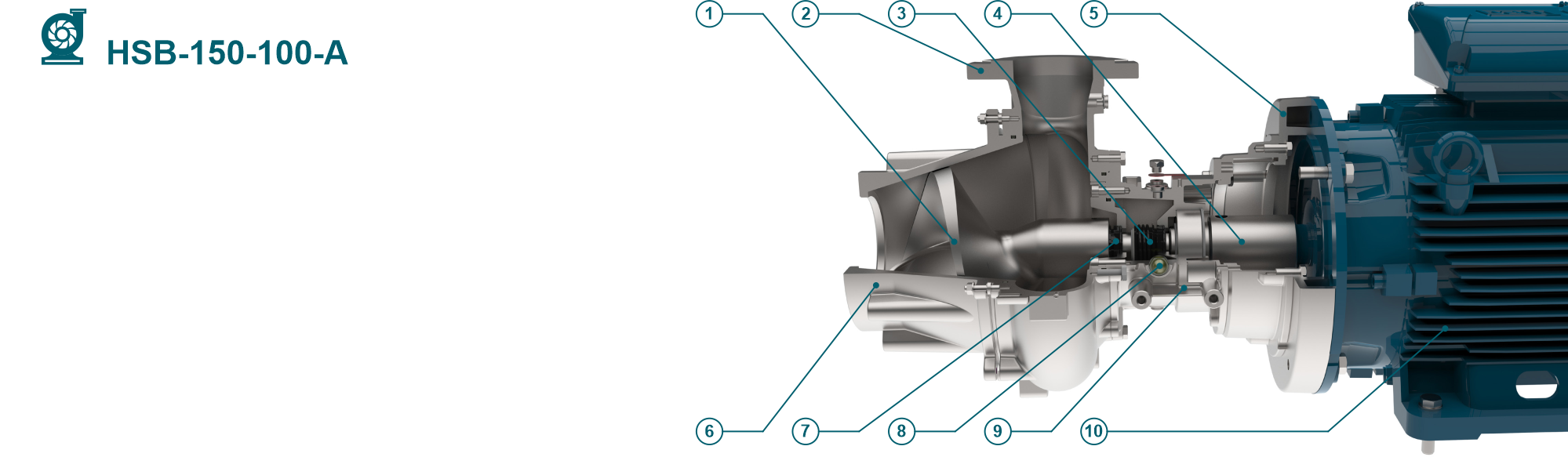 Насосы серии HSB-150-100 имеют максимальный расход 360 м³/ч и высоту напорного столба до 24 м, они потребляют мало энергии по сравнению с другими технологиями и, следовательно, имеют сниженные затраты на эксплуатацию и техническое обслуживание.
