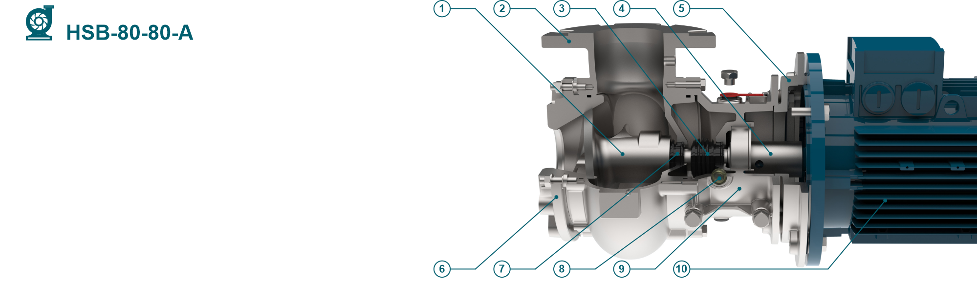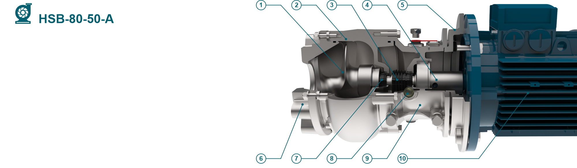 Насосы серии HSB-80-50-A. имеют максимальный расход 53 м³/ч и высоту напорного столба до 23 м. Verderhus® Это высокоэффективные насосы с низким NPSHr, снижающий как энергопотребление, так и эксплуатационные расходы.